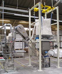 一種是大袋開袋站是靠叉車將大袋(噸袋)吊裝到卸料機的機架上,它本身不帶起重設備。